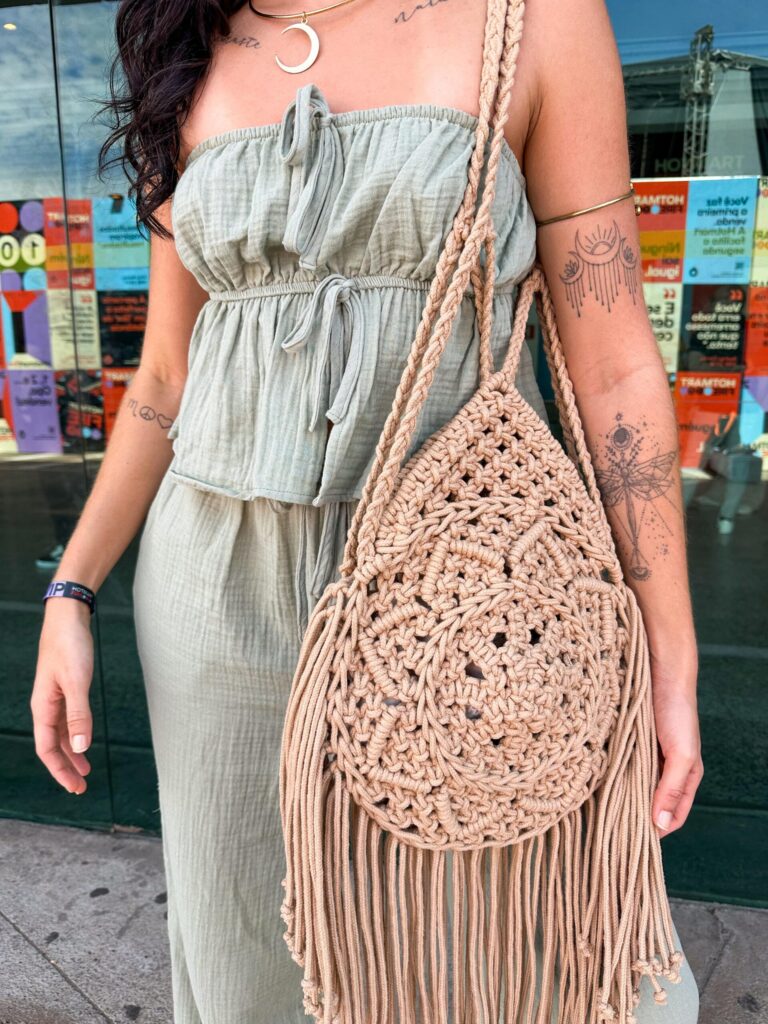 Entre as palestras, circulamos com a Bag Aura e chamava a atenção de quem passava. Cada elogio era uma oportunidade de explicar que vamos ensinar a técnica no workshop Do Zero à Primeira Bolsa e incentivar inscrições. Muitas pessoas ficaram animadas em aprender macramê, e percebi que existe um interesse genuíno por produtos artesanais de qualidade algo que pretendo explorar nos próximos lançamentos.